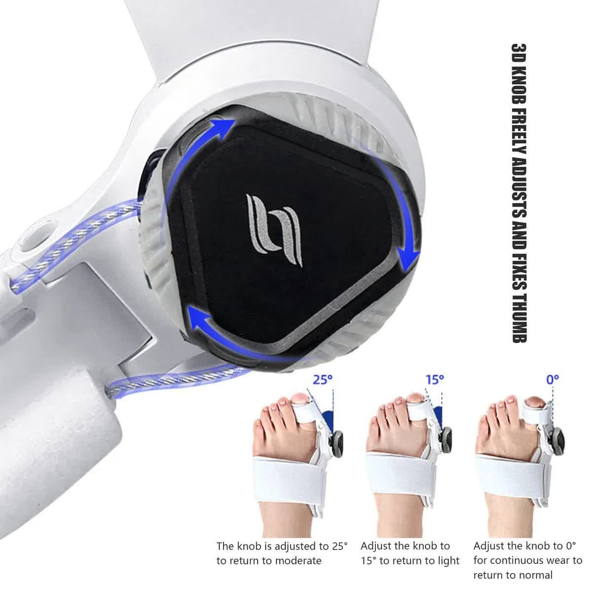 با این مکانیسم، زاویهی انگشت شست قابل تنظیم است. همچنین این اسپیلنت میتواند درد بونیون و پنجه پا را به طور مؤثری کاهش دهد.
